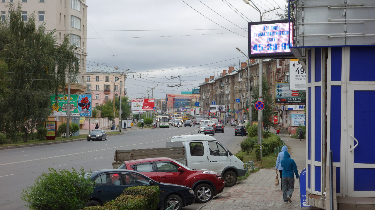 Omsk appears as we imagined Russia to be, not like the clean and posh Moscow city centre. We linger through the city, sit down in a nice cafe and try out all the means of transport. The 60 years old tram rumbles and sways through the city like a ship in rough sea. As a fast alternative there is Marshrutkas, private minivans, that drive you high-speed through the city.