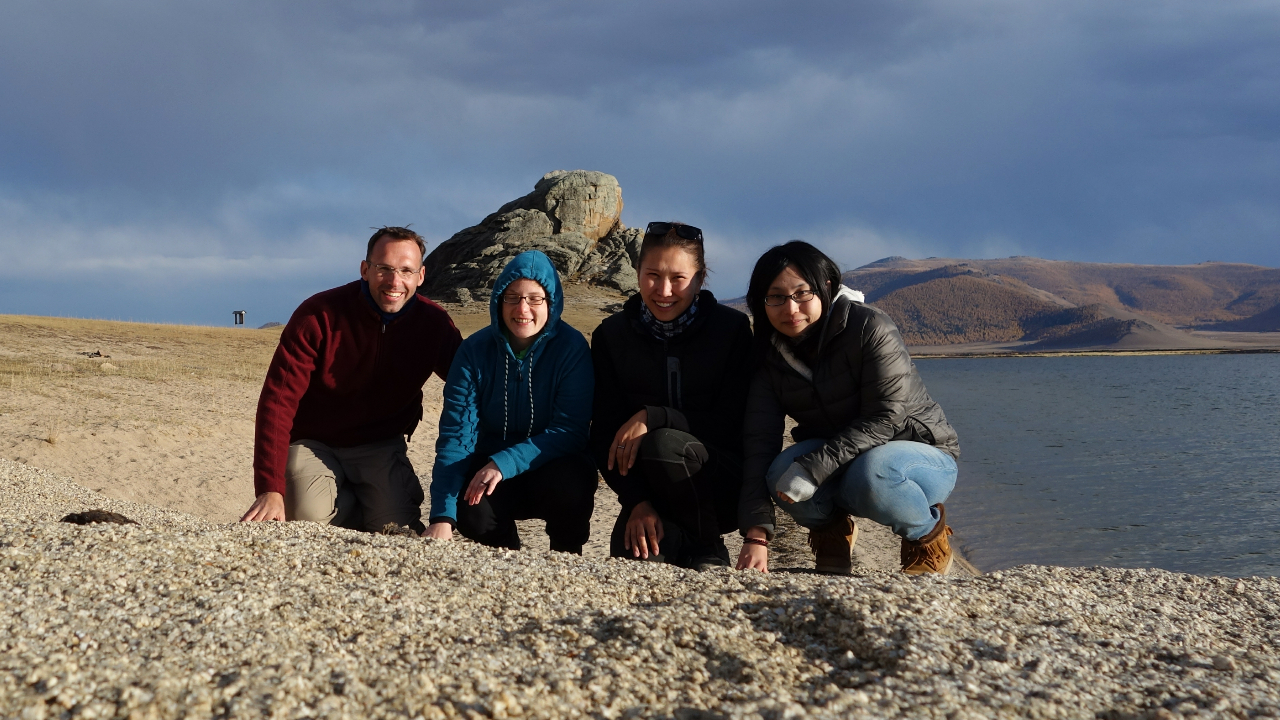 Morgens kurz nach sechs heizt jemand von der Gastfamilie den Ofen wieder an. Ein Luxus, für den wir alle sehr dankbar sind. Meistens stehen wir dann gegen acht auf, frühstücken in der Jurte und machen uns auf dem Weg zum Ziel des Tages. Mittagessen gibts unterwegs. Wir halten an einem Fluss, an einem Berg oder im Wald und Tseenee bereitet im Heck des Vans auf einem Campingkocher das Essen. Es schmeckt recht lecker, was mir aber etwas Probleme macht, ist die Art des „Abwaschens“ in freier Natur. Alles wird nur mit einem Lappen mit kaltem Wasser abgewischt und abends hat man noch den leichten Nachgeschmack von Frühstück und Mittag am Besteck. Was auch etwas gewöhnungsbedürftig ist, ist das Ess- und Trinkverhalten der Mongolen. Alles halbwegs Flüssige wird lautstark geschlürft und das Essen wird quasi von der Gabel angesaugt. Es geht tatsächlich leichter, aber wir müssen zusehen, dass wir uns das vor unserer Rückkehr wieder abgewöhnen. 🙂