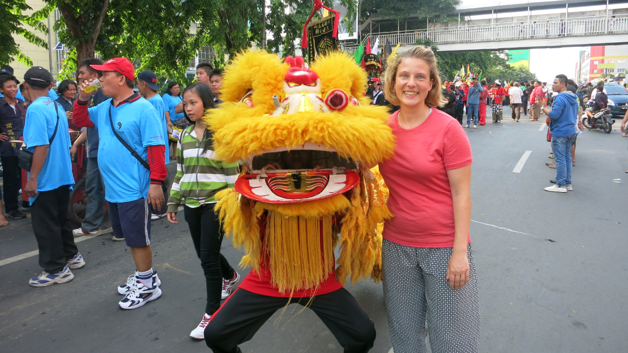Nach zwei Wochen ist es genug mit dem Pauschalurlaub und wir fliegen in die Hauptstadt Jakarta. Der Verkehr auf Bali war verrückt, ist aber nichts im Vergleich zu Jakarta. Unser Fahrer braucht zwei Stunden um vom Flughafengelände runterzufahren. Jakarta schafft uns. Es ist heiß, sehr schwül, schmutzig, ein irrer, ohrenbetäubend lauter Verkehr schiebt sich durch die verstopften Straßen. Die holländische Kolonialzeit ist noch an den Kanälen und vielen schmalen Häusern erkennbar. Jedes dritte Haus steht aber leer und verfallen da, ein Relikt der blutigen Studentenproteste Ende der 1990er. In Chinatown machen wir eine Zeitreise ins Mittelalter, wo man sein Dreckwasser einfach aus dem Fenster in den offenen Kanal am Straßenrand kippt. An den Straßenständen traut man sich wirklich nichts zu essen. Es gibt natürlich auch ein schickes Regierungsviertel und Shoppingcenter, aber so wie Singapur kann uns Jakarta nicht überzeugen. Unser Highlight ist ein Straßenumzug im Anschluss zum großen Jakarta Marathon vom Vormittag.