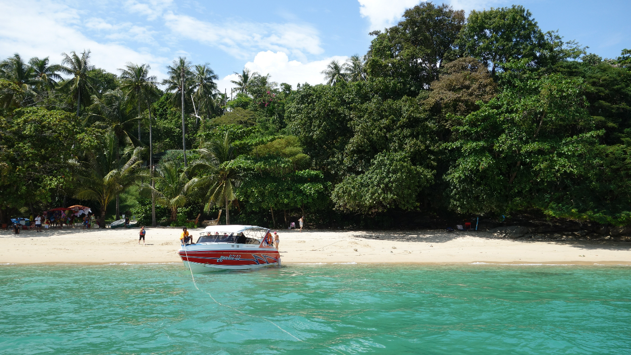 Das Speedboot zur Koralleninsel startet direkt vom Strand