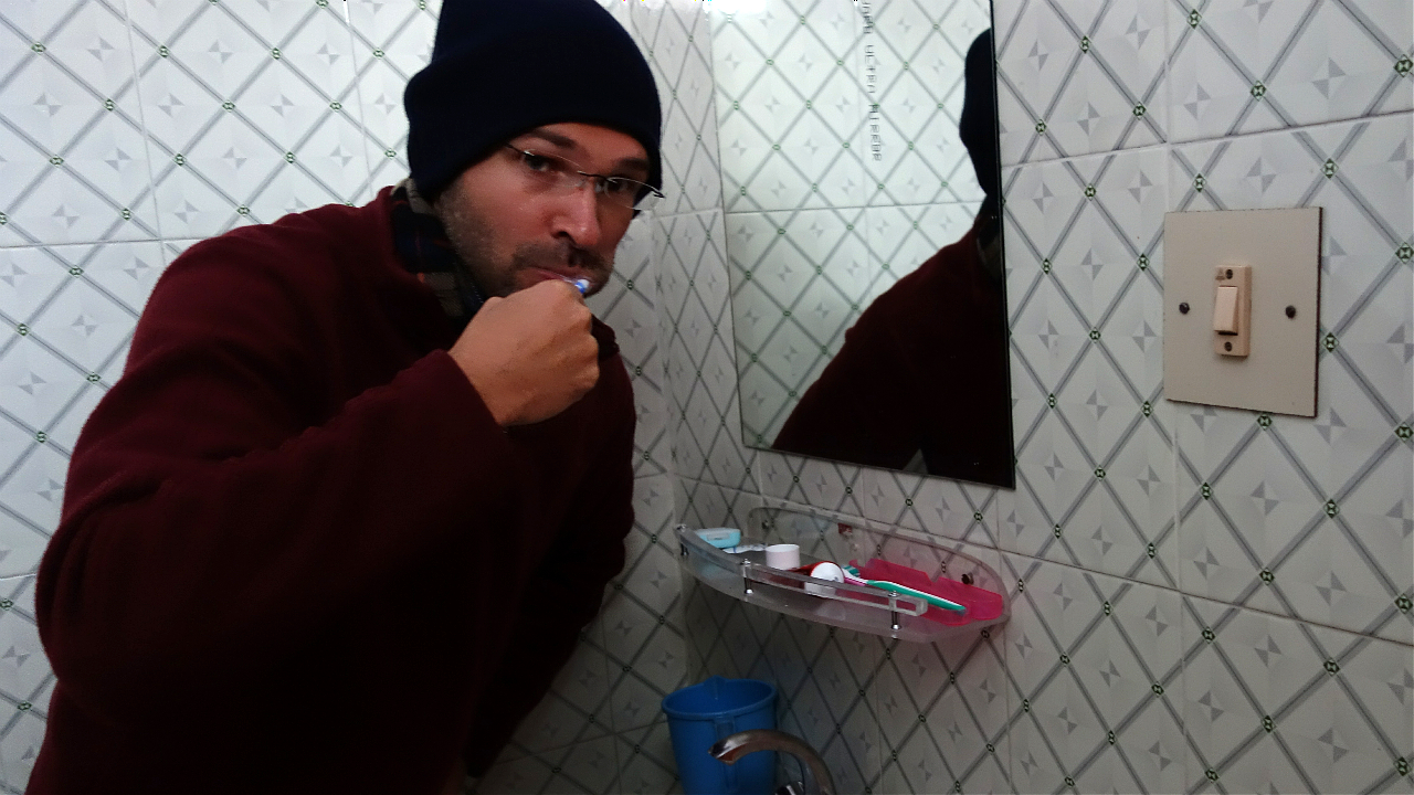 Fürs Zähneputzen bekommen wir heißes Schneewasser