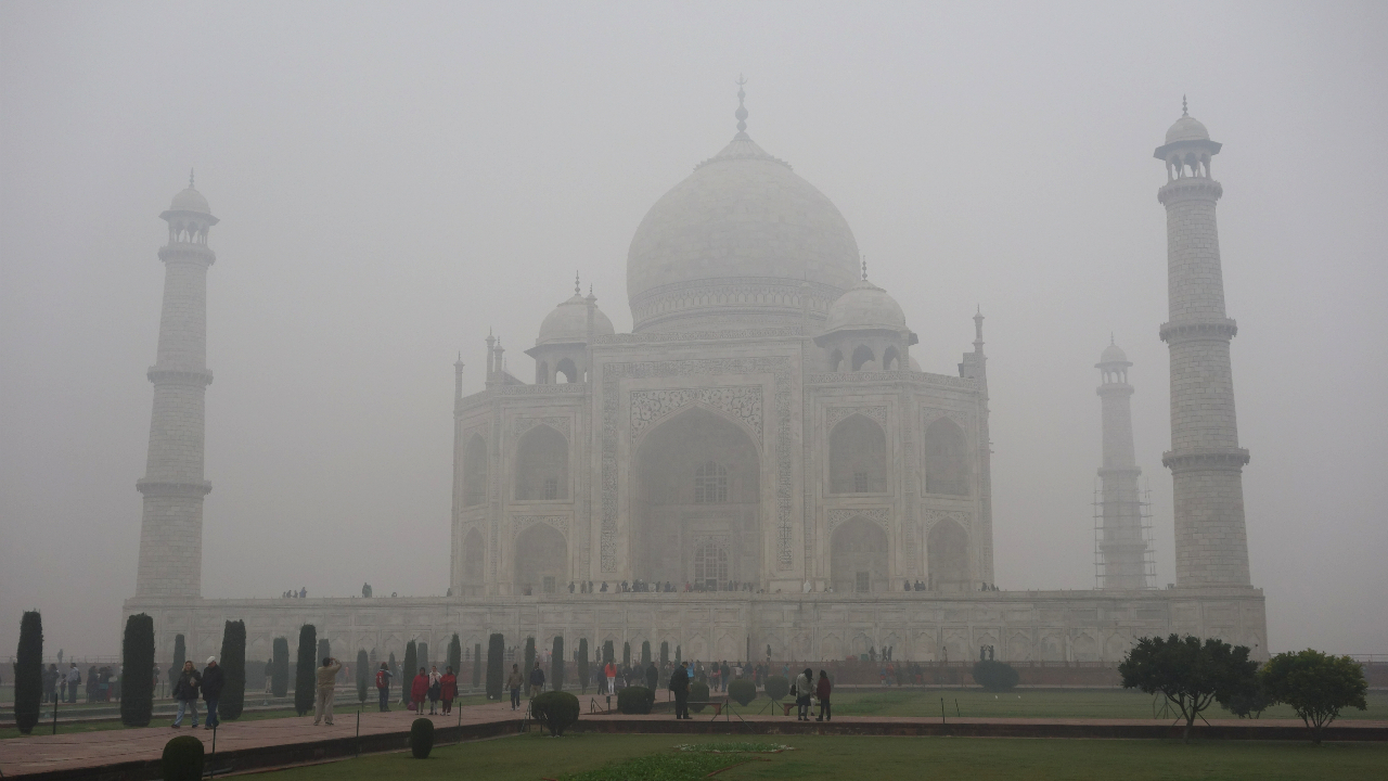 Die Fahrt geht quälend langsam. Statt der auf dem Ticket angegebenen drei Stunden brauchen wir sechs. Für 150 km! Für die Übernachtung in Agra haben wir uns dafür mal was richtig Schickes geleistet. Mit unserem abgerissenen Outfit und den großen Rucksäcken poltern wir in die riesige Lobby eines 5-Sternehotels. Trotz unseres verwegenen Äußeren werden wir absolut professionell vom Hotelmanager, vom Raummanager und von der Rezeptionschefin persönlich begrüßt. Den Rest des Tages genießen wir die Annehmlichkeiten des Hotels und am nächsten Morgen geht es in aller Frühe zum Taj Mahal. Über Agra hängt ein dicker Nebel, daher sehen wir das Taj Mahal auch wirklich erst, als wir fast direkt davor stehen. Lange können wir dieses Wunderwerk allerdings nicht bestaunen, denn wir müssen uns heute noch ein Auto nach Delhi organisieren. Wir werden schnell fündig. Der Preis ist zwar gepfeffert, aber wir haben keine Wahl, denn wir müssen unseren bereits gebuchten Bus von Delhi nach Manali erwischen. Der bestellte Fahrer holt uns gegen Mittag im Hotel ab und bringt uns in seinem Privattaxi bis nach Delhi zum Busbahnhof.
