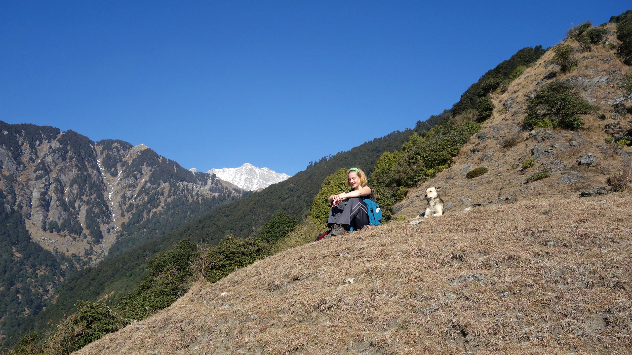 Auch Wandern steht wieder auf dem Programm. Die bekannteste Route in der Gegend führt zu einem Wasserfall. Als wir nach einer knappen Stunde schon ankommen und wir ein Restaurant und dutzende Hippies und Kiffer dort vorfinden, beschließen wir weiter zu gehen. Es gibt einen Pfad, der bis hinauf zum Gipfel führt. Auf dem Weg gesellt sich einer der vielen streunenden Hunde zu uns. Ganz spontan taufen wir ihn Lolek. Lolek scheint sich gut auszukennen und wir haben ihn auf dem sich steil empor windenden Pfad gern dabei. Wir bleiben nicht lang zu dritt. Unterwegs treffen wir Hinkebein. Er kommt wohl grad von oben, aber anscheinend macht es ihm nichts aus, uns nochmal zu begleiten. Wir nennen ihn so, weil er eine gebrochene Pfote hat und dreibeinig den Berg mit uns hinauf hüpft. Der Weg führt uns auf ein Hochplateau mit einem kleinen Tempel und einem verlassenen Bergdorf mit kleinen Steinhütten. Hier ist schon länger kein Mensch mehr gewesen und andere Wanderer treffen wir auch nicht. Der Kamm ist noch sehr weit weg, aber irgendwie verliert sich der Wanderweg am Dorf. Nach einer kurzen Pause entscheiden wir uns, es einfach querfeldein zu versuchen. Wir sind froh, als wir nach drei Stunden kraxeln mal wieder auf ein Plateau zum Verschnaufen treffen. Der Gipfel scheint zum Greifen nah. Ich kann nicht mehr, aber Moppi will unbedingt noch hinauf. Eine halbe Stunde hat er Zeit, machen wir aus, sonst wird es zu spät um im Hellen wieder unten anzukommen. Wir sind beide total überrascht über unsere Hunde, als Lolek wie selbstverständlich Moppi begleitet und Hinkebein bleibt, um mir Gesellschaft zu leisten. Die abgemachte halbe Stunde vergeht und kein Moppi ist in Sicht. So langsam mache ich mir Sorgen. Er hat weder Handy noch Proviant dabei und es wird bald dunkel. Nach anderthalb Stunden taucht er verdreckt und entkräftet wieder auf. Er hat den Gipfel erreicht, aber den falschen Weg zurück genommen, ist durch Sträucher hinabgerutscht, auf allen Vieren wieder hinauf und hat dann doch den Weg wiedergefunden. Der treue Lolek war ihm dort oben zwar keine Hilfe, aber immerhin ein kleiner Trost. Mit den beiden Hunden machen wir uns schnellstmöglich an den Abstieg und schaffen es mit Anbruch der Dämmerung in den Ort, wo die beiden ihren Stammplatz wieder beziehen und wir uns erschöpft nach Hause schleichen.