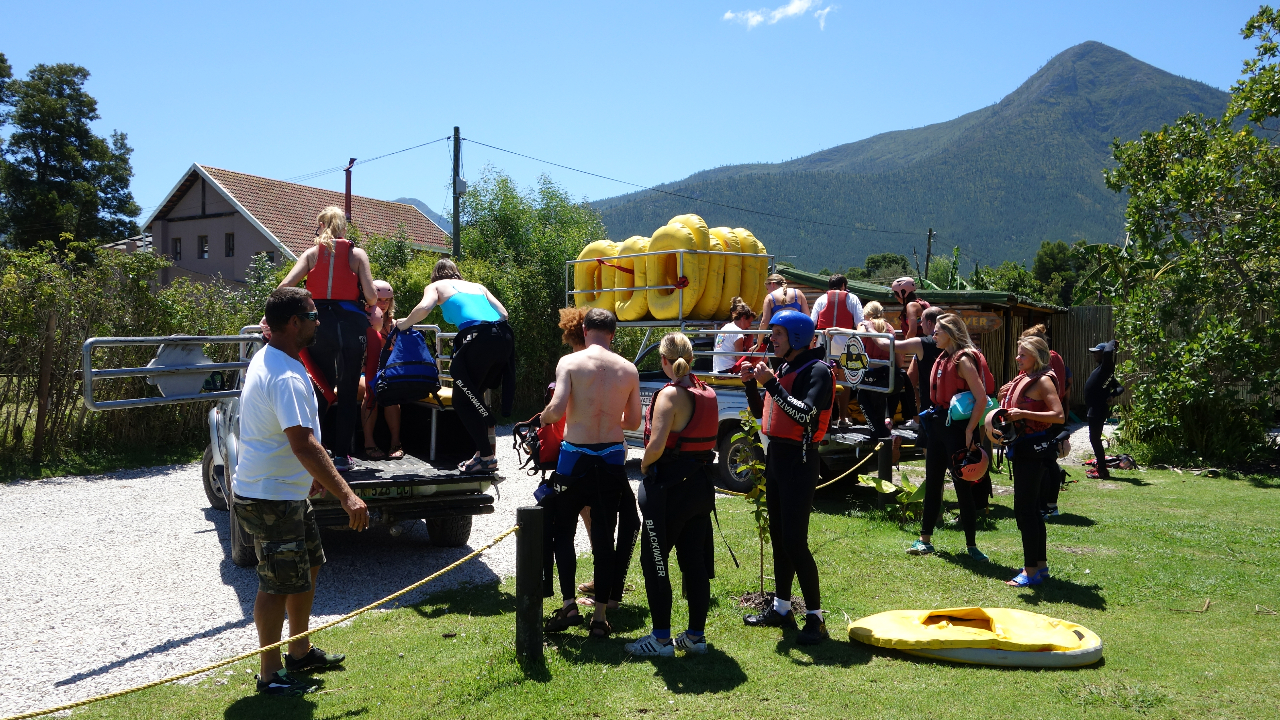 We had a quick stop in the city of Plett to buy new supplies and at dusk we arrived at our accommodation. This time we were camping, but a more luxurious kind of. The tent was already set up, and instead of air mattresses and sleeping bags we had a cozy bed with many pillows inside. It was very comfy! Unfortunately we had a limited time frame for our stay here which ment that we could only see a small fraction of the huge Tsitsikamma park the next days. It was just too big and we wanted to see so much more. Within this natural park you can see dense woods, deep valleys and high mountains in a row. The Bloukrans River Bridge crosses one of the deepest valleys and is a world famous bungee jumping bridge, being the highest with 216 meters. Just watching the bungee jumpers made us feel dizzy, so we left it at watching. Instead of that I tried out tubing: sitting on a rubber tyre and floating down the river. At the end I was a bit disappointed because the water level was that low that it was kind of boring and there were none of the fast currents I was hoping for.