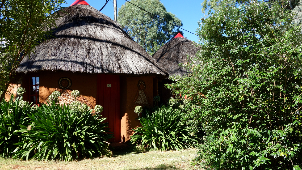 Unsere bisherige Fahrt durch Südafrika kam uns vor wie das Blättern in einem Hochglanz-Reiseprospekt. Extrem schön aber irgendwie nicht authentisch. Lesotho fühlt sich anders an, natürlicher, ehrlicher, nicht so aufgemotzt. Es braucht eine gute Stunde durch die unbeleuchteten Dörfer bis wir zu dem uns bereits angekündigten Schotterweg kommen. Der geht erstmal einige Kilometer bergauf bis zu den Toren von Eden, dem höchsten Punkt des Passes, und dann immer am Abhang entlang bergab. In den Außenkurven leuchten die Scheinwerfer einfach nur in die unendlich scheinende Dunkelheit. Der ganze Untergrund ist loser Schotter mit vielen spitzen Steinen, die teilweise so groß sind, dass wir ihnen ausweichen müssen. Die unzähligen Schlaglöcher zeichnen sich im Scheinwerferlicht auch nur als schwarze Flecken ab. Hin und wieder rutschen wir beim Bremsen ein paar Meter auf den steileren Stücken und die Anspannung steht sowohl Moppi als auch mir ins Gesicht geschrieben. Vollgepumpt mit Adrenalin aber gleichzeitig auch ziemlich k.o. kommen wir um 22 Uhr, kurz vor Stromabschaltung, an. Wir beziehen zügig unsere Basothohütte, eine kleine Rundhütte, die nur mit Bett und Stuhl möbliert ist, und ich verbringe noch etwas länger im Gemeinschaftsbad bis sich meine Übelkeit von der Fahrt gelegt hat.