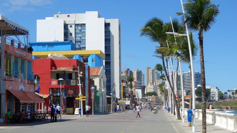 Zurück bei Castis Familie wird uns die ganze Sache immer unangenehmer, zumal Casti wieder arbeiten muss, uns ihre Mutter in der Zeit aber sehr mit Essen und frischen Säften verwöhnt und wir nicht einmal richtig mit ihr kommunizieren können. Moppi bucht uns daher eine kleine Ferienwohnung im Viertel Barra in der Innenstadt. Damit stoßen wir unserer Gastfamilie zwar gehörig vor den Kopf, aber wir wollen ihre Gastfreundschaft nicht in diesem Maß überbeanspruchen und ausnutzen. Nun liege ich also mit einer konstanten Temperatur von 40°C im Bett unserer kleinen Unterkunft und Moppi kümmert sich um Einkäufe, Essen und Medikamente, kocht, obwohl ich nichts esse, kühlt meinen überhitzten Körper und hofft, dass ich wieder auf die Beine komme. Und tatsächlich, nach einer Woche klingen die Symptome ab. Mit einem roten Hautausschlag am ganzen Körper verabschiedet sich das Dengue-Fieber von mir. Langsam kehrt auch mein Tatendrang zurück, ich will ans Meer, endlich wieder schwimmen und ich will die Stadt entdecken. Auch wenn Moppi gerade etwas müde vom Reisen ist und nur selten mit an den Strand Farol da Barra kommt (5 Gehminuten von unsere Unterkunft), schaffen wir es immerhin zu einer geführte Altstadttour.