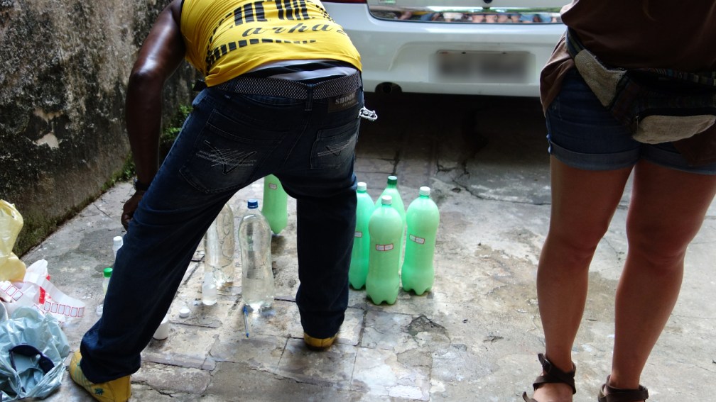 Bis vor ein paar Jahren war das Viertel Pelourinho eine gefährliche No-Go-Area, wurde aber von der Stadt liebevoll und farbenfroh saniert und lädt zum Schlendern und Verweilen ein. Inzwischen ist es sogar UNESCO Weltkulturerbe. Neben der schmucken Altstadt führen uns unsere Guides auch in Gegenden, die wir allein nicht unbedingt besucht hätten, z.B. in eine kleine Favela in der Innenstadt, in der die Bewohner erzählen, wie sie leben und wo man das Improvisationsgeschick der Bevölkerung an den Installationen für Strom- und Wasserversorgung sehen kann. In dem einen oder anderen Hinterhof wird illegales Glücksspiel betrieben und auch selbst gebrannten Schnaps scheint man hier als Eingeweihter erwerben zu können.