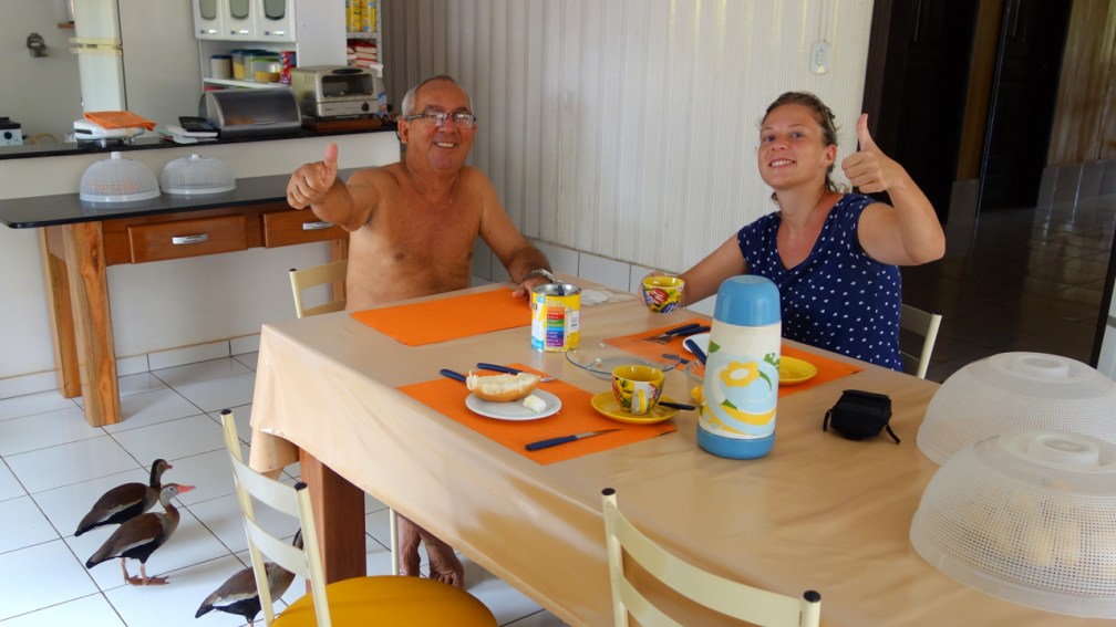 Es soll mindestens eine Pension in Fordlândia geben. Als gegen sechs die Sonne aufgeht, packen wir unsere Sachen und ziehen los. Wir stellen schnell fest, dass es sogar zwei gibt. Bei der sympathischeren klopfen wir an. Ein freundlicher kleiner Mann macht uns auf und wir sind froh, dass schon jemand auf den Beinen ist. Er stellt sich als Raimondo vor und ja, er hat auch ein Zimmer für uns. Herrlich! Wir dürfen unseren Raum mit angeschlossenem Bad direkt beziehen und in der Zeit, in der wir duschen, macht uns Raimondo ein leckeres Frühstück. Danach fallen wir erschöpft ins Bett und holen erst einmal etwas Schlaf nach.